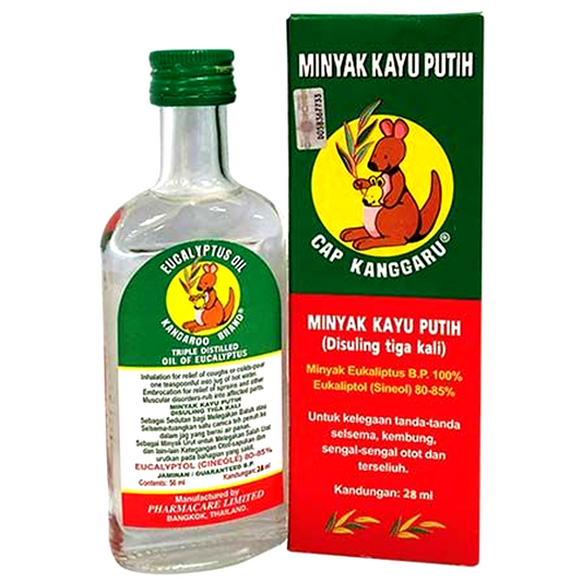 ນ້ຳມັນກັ່ນຄູ່ຍີ່ຫໍ້ Kangaroo ຂອງ Eucalyptus Oil Eucalyptol 28cc ຕໍ່ຊິ້ນ