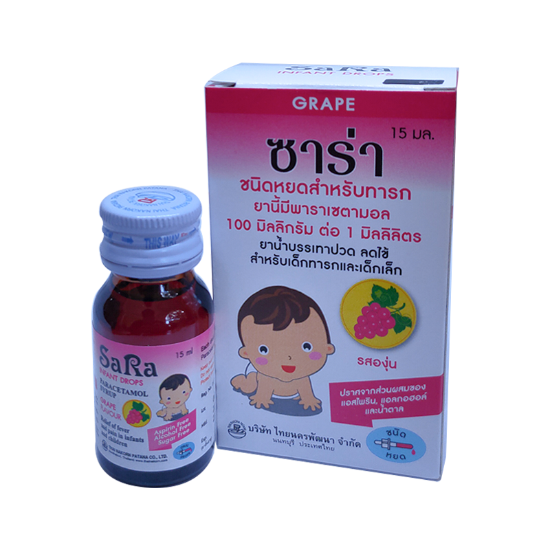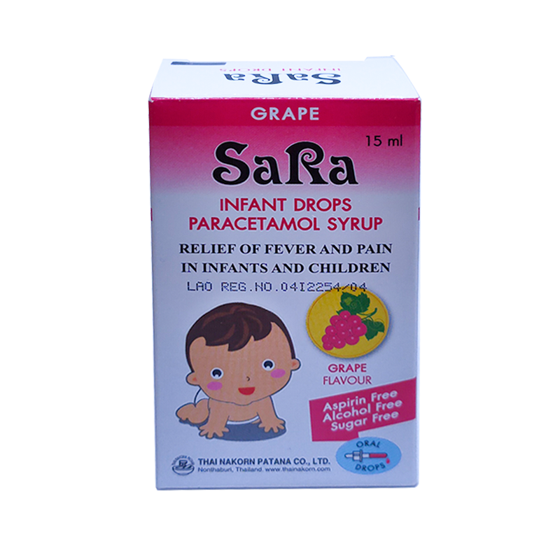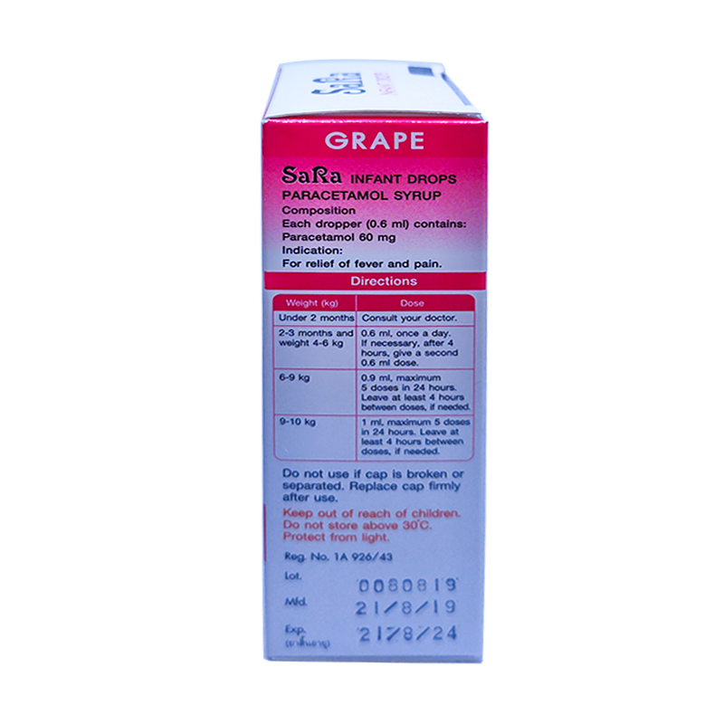 SaRa For Children Paracetamol Oral Suspension Relief of Fever and Pain grape flavour Size 60 ml