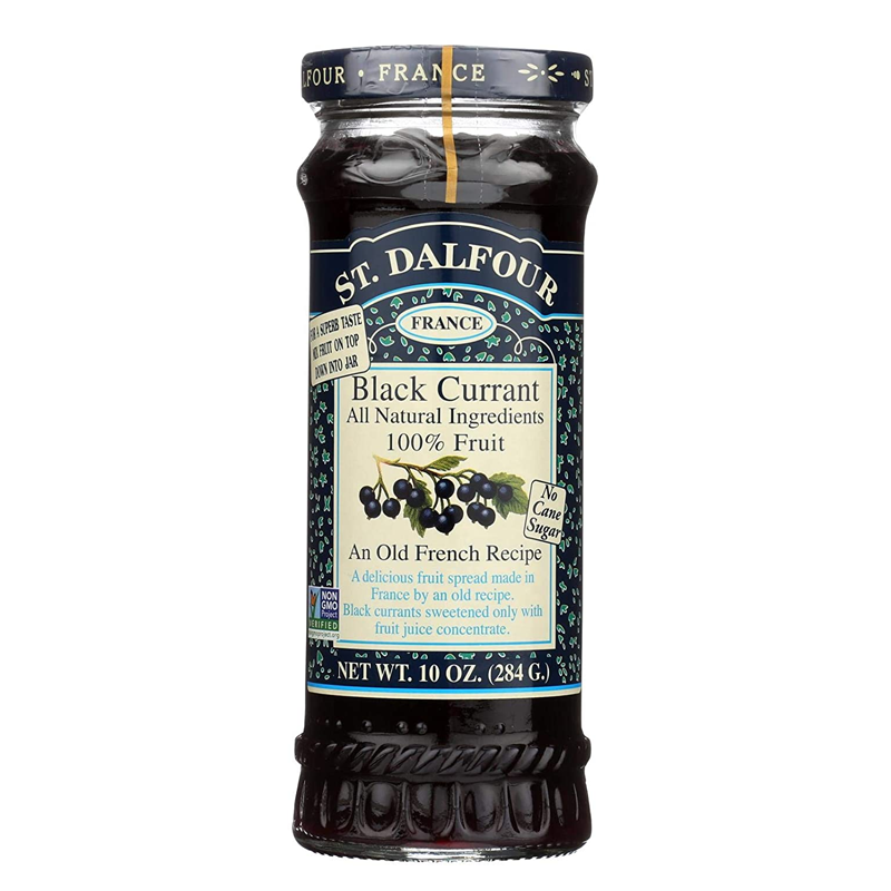 Experience the rich and tangy flavor of St. Dalfour Blackcurrant fruit spread. Made with 100% natural ingredients, this jam is high in fruit content and is free from preservatives, additives, and artificial coloring. Each jar contains 284g of delicious, healthy, and guilt-free spread.